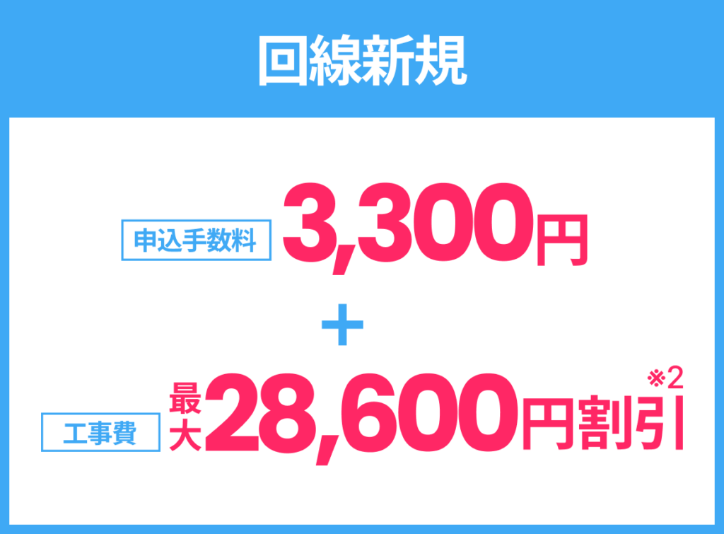 ※ 工事の内容によっては別途費用が発生する場合があります。お客さま宅内の配線設備等を再利用し、かつお客さま自身で回線終端装置等を設置する場合は工事費は無料となります。工事費を分割払いで希望した場合でも、無派遣工事の場合は一括払いになります