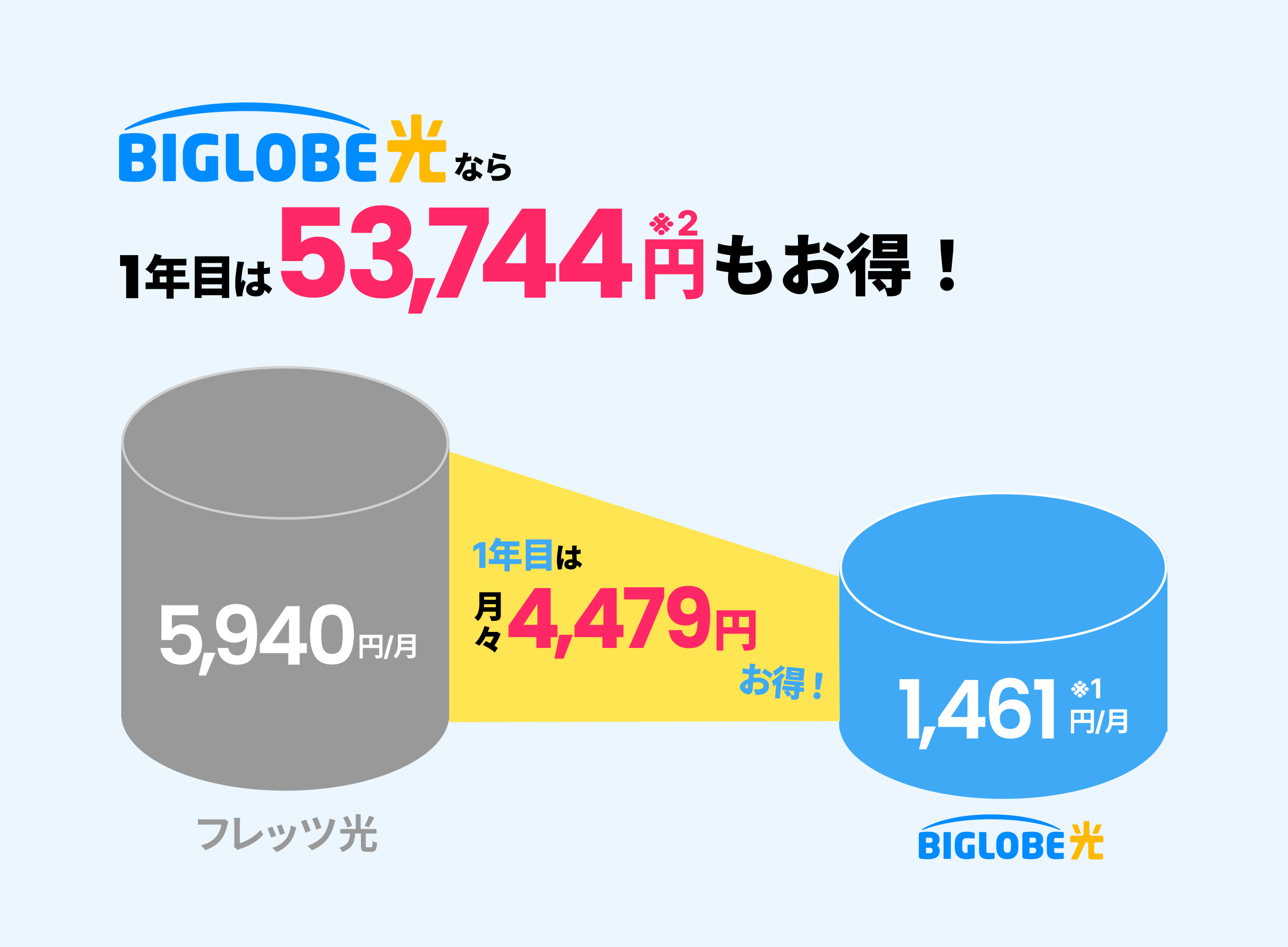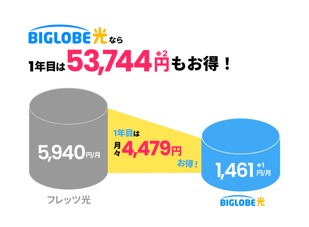 さらにいままでお使いのインターネットからBIGLOBE光に契約変更することで、ぐっと月額料金を抑えることが可能です!