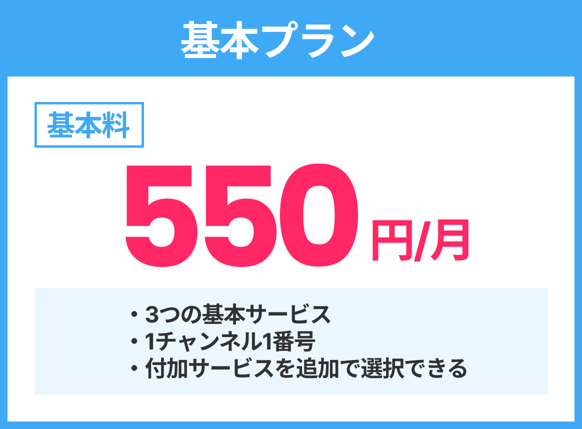 • 月額料金に加え、1電話番号ごとに「ユニバーサルサービス料」がかかります。